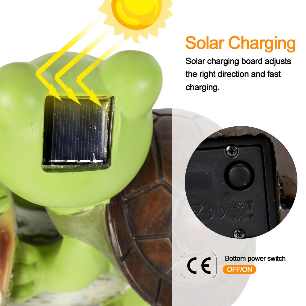 Home > [only for pickup with a prepaid label]Garden Statue Cute Frog Face Turtles Figurines,Solar Powered Resin Animal Sculpture with 3 Led Lights for Patio