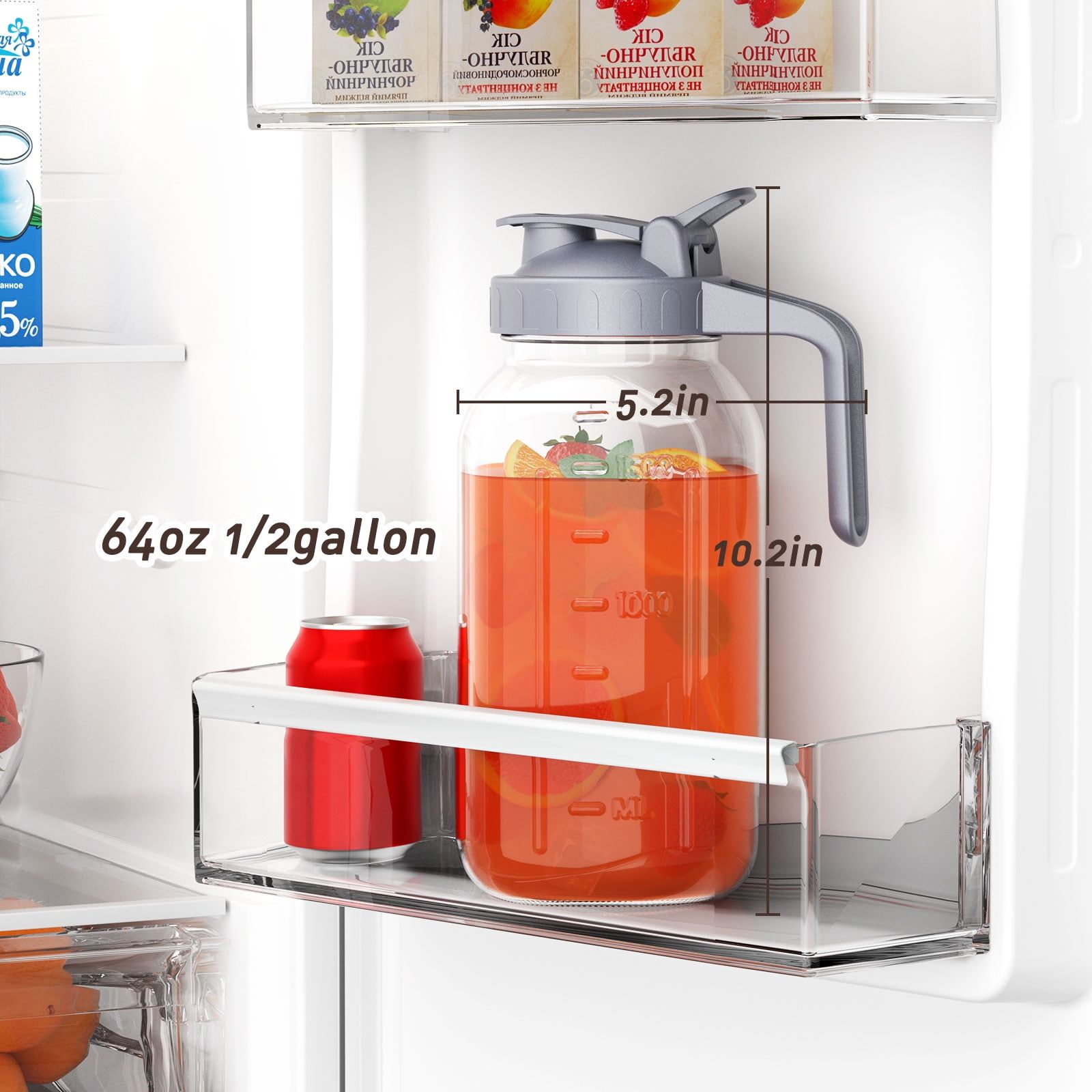64 oz Large Mason Jar Pitcher with Lid and Spout, Pitcher with Lid for Cold Brew Coffee, Ice Beverage, Sun Tea, Gray