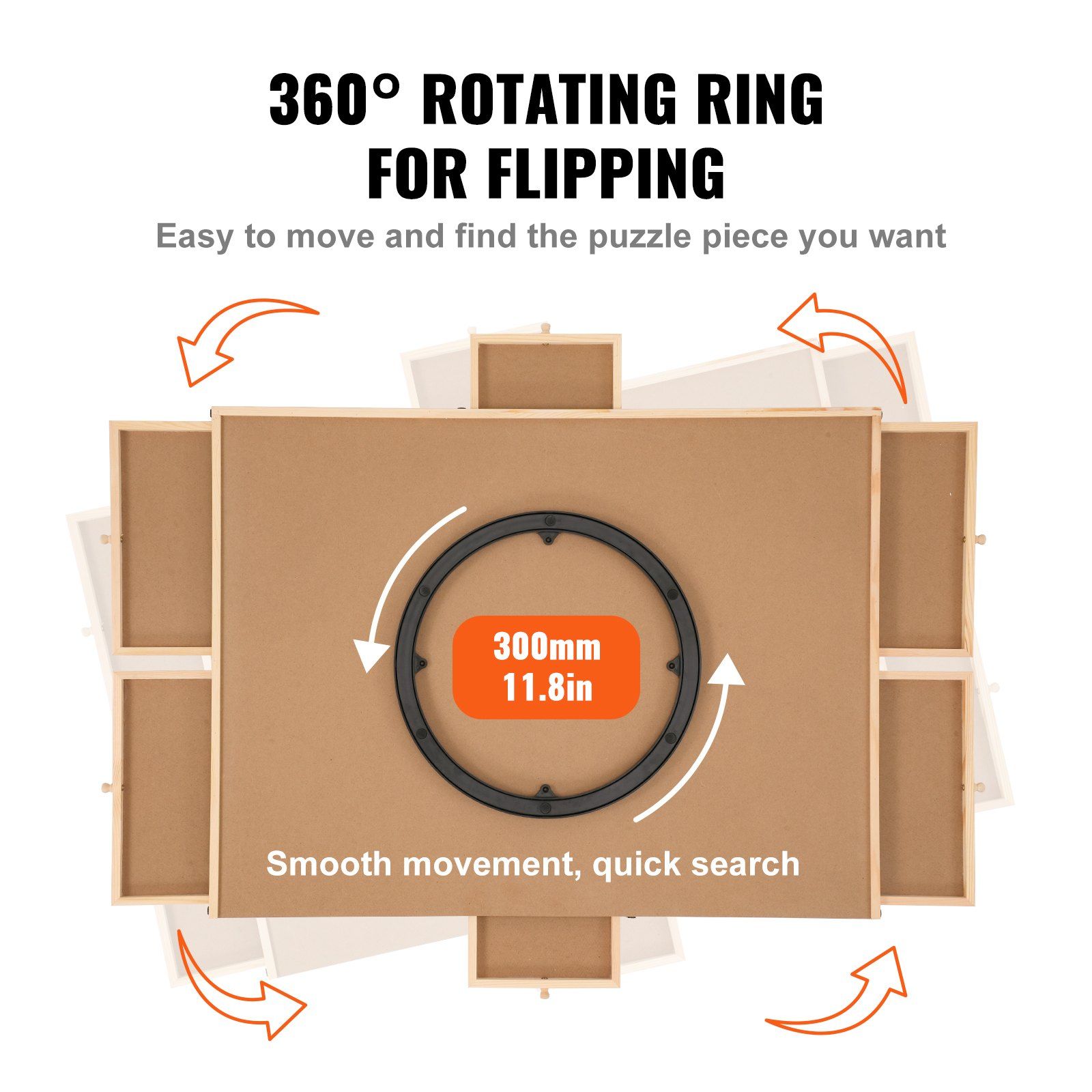 The wooden jigsaw puzzle plateau can smoothly rotate 360°, allowing you to move it to the desired position in seconds, making it easier to find the needed puzzle pieces.