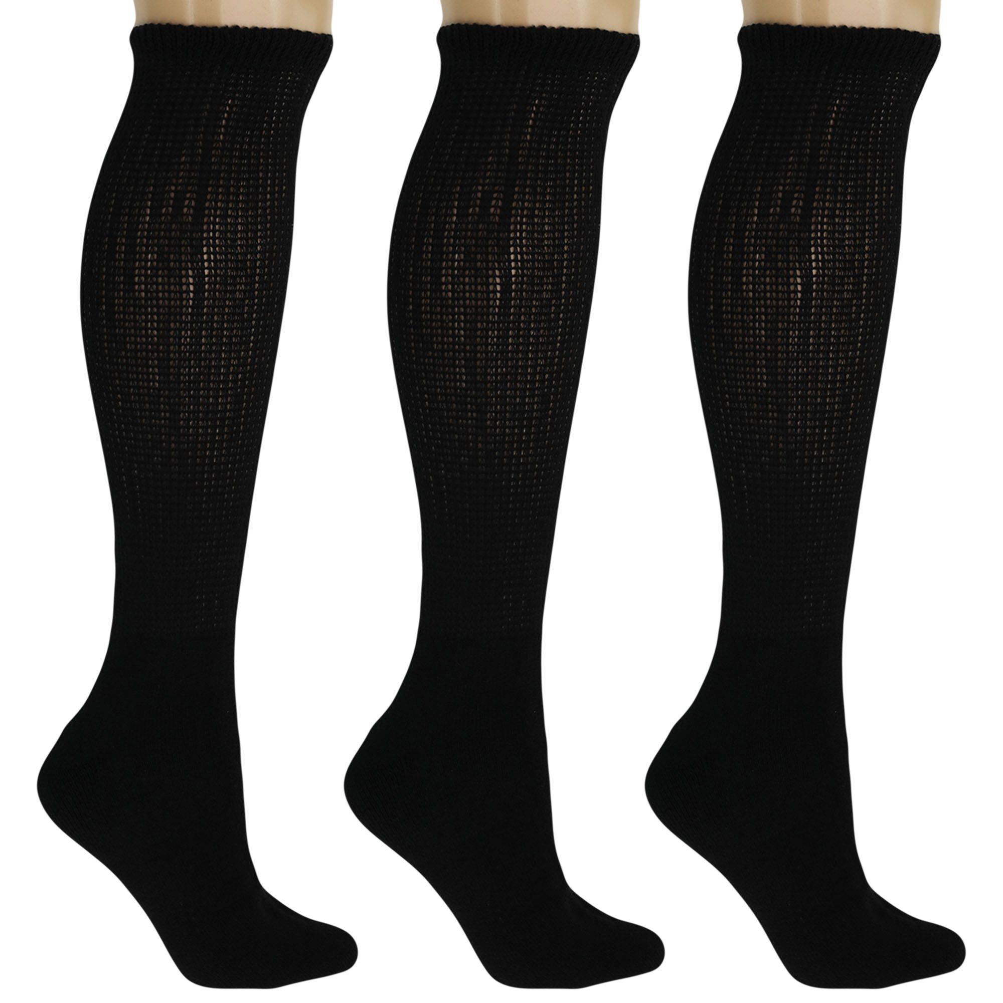 Package Includes: 3 pairs of AWS/American Made men’s diabetic knee-high socks in black (over-calf length). Each pack offers enough socks for daily wear, providing comfort and support throughout the week.