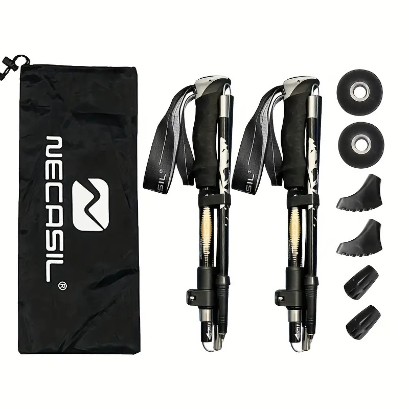 Five-Section Folding Trekking CaneUltralight Yet Sturdy Hiking Companion for All Terrains Key FeaturesAdaptable Height System 5 adjustable sections (24"-37") Quick-lock aluminum clamps Premium Construction 7075 aerospace-grade aluminum shaft High-density EVA grip (sweat-resistant) Tungsten carbide tip + rubber cap Gift-Ready Packaging Includes carrying pouch Available in 6 colors (black/blue/pink etc.)