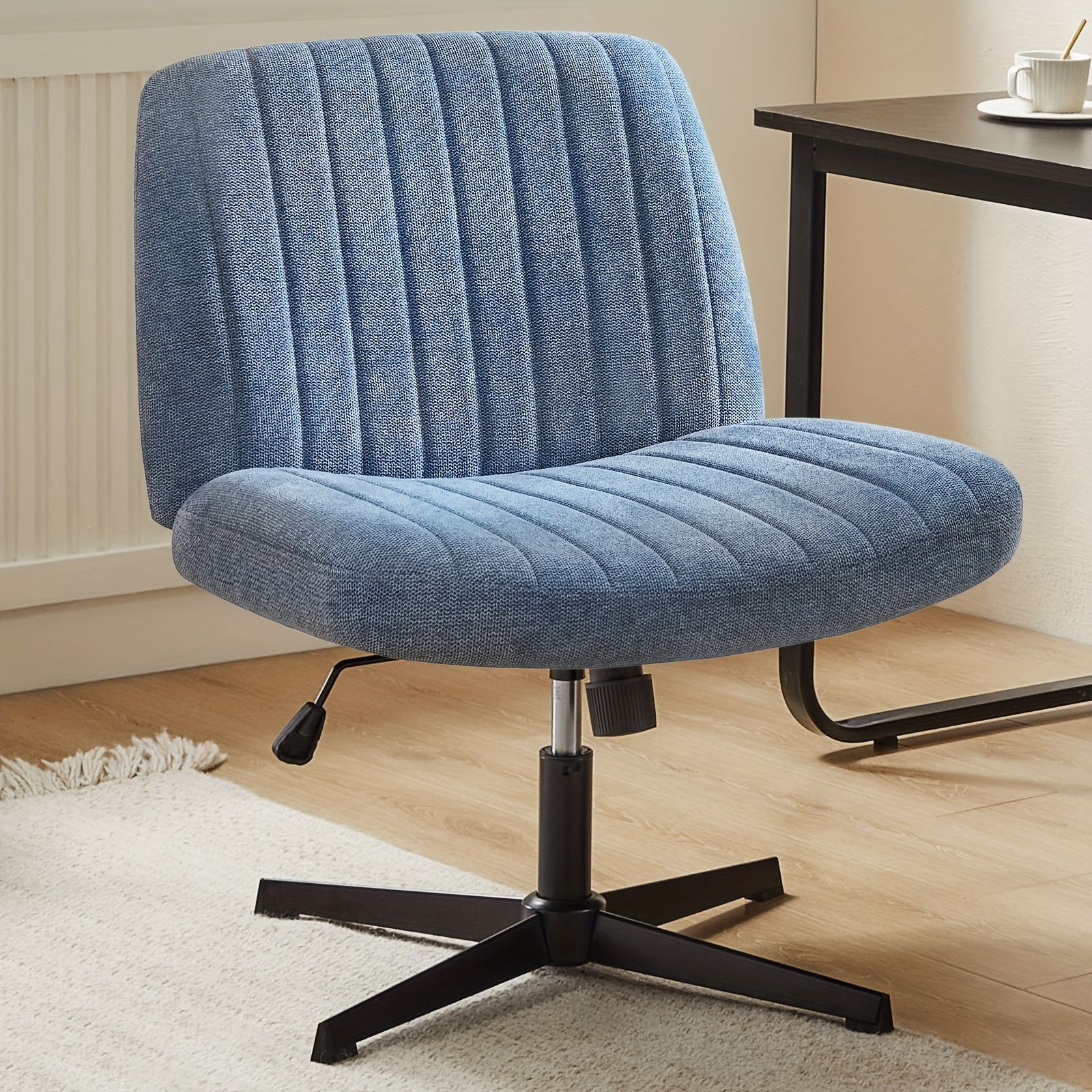 Cross Legged Office Living Room Rocking Gaming Chair Armless Wide Desk Adjustable Swivel Fabric Task Vanity Home Office