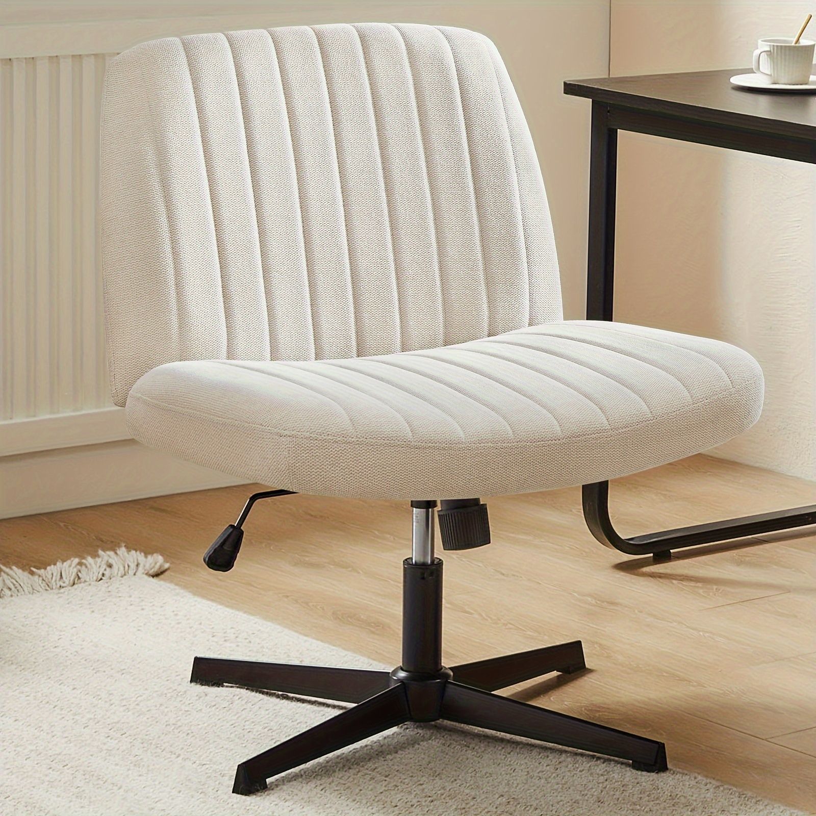 Cross Legged Office Living Room Rocking Gaming Chair Armless Wide Desk Adjustable Swivel Fabric Task Vanity Home Office